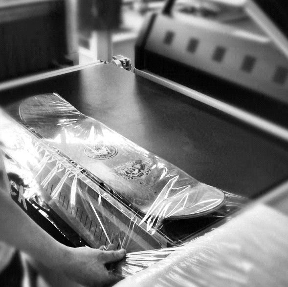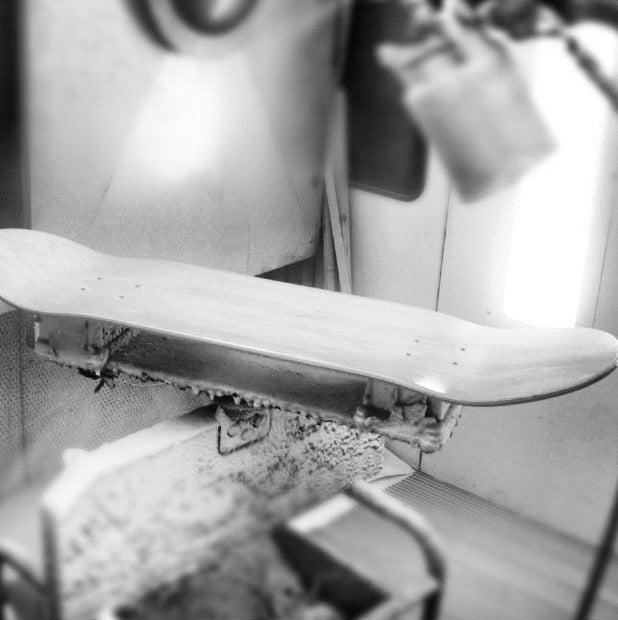 For our Swiss Handmade Decks we use a Swiss glue. The boards are cold single pressed. That means one deck in the mold, no heat! Heat makes the decks crispy and not that, that you want!